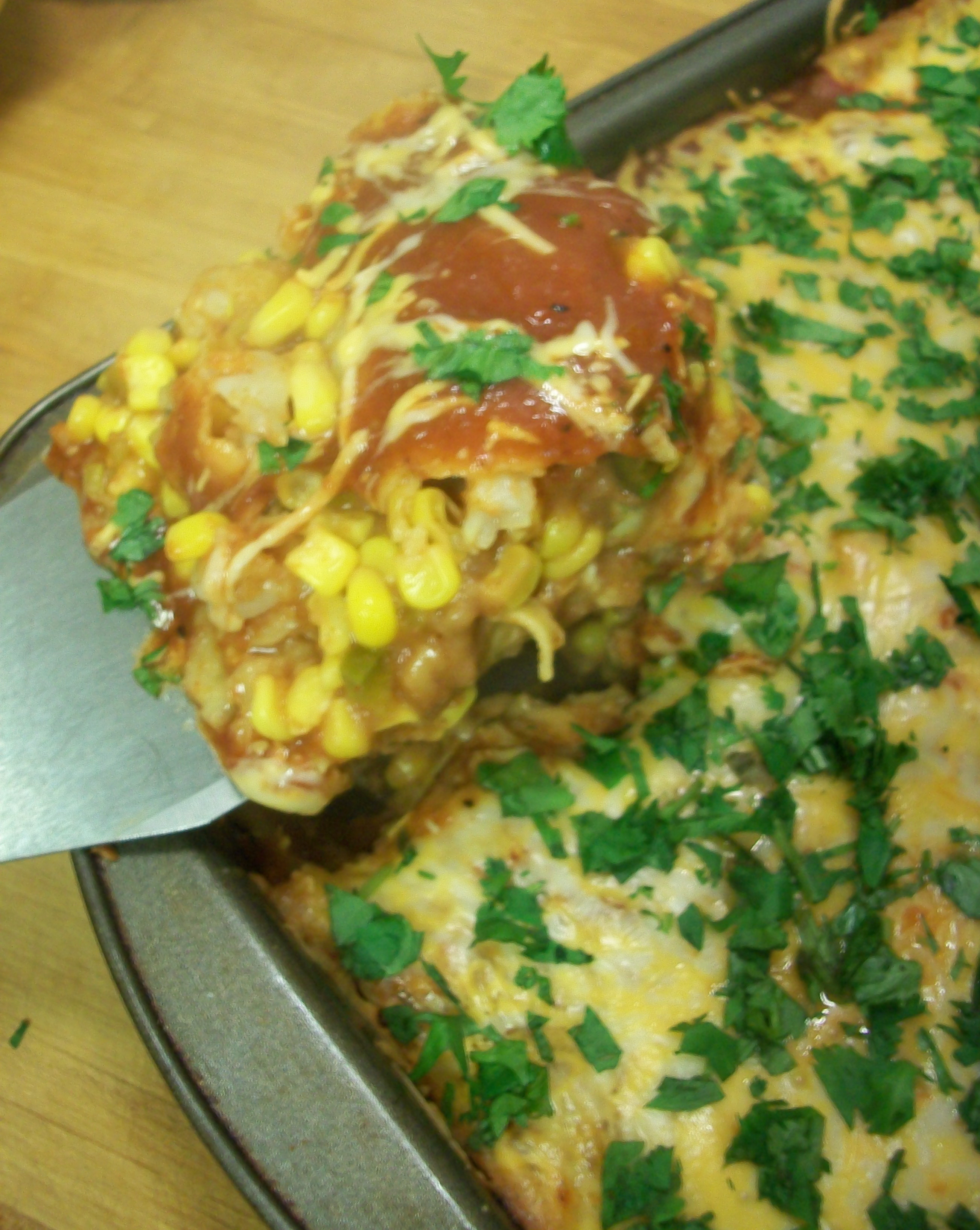 I love a quick dinner! This casserole came together in about ten minutes; the only time-intensive thing was peeling the shrimp. It would have been even quicker if Fareway would have had green chiles in stock (I minced the jalapenos and banana peppers I had in the fridge instead). It seemed like a shame to chop the shrimp, but it was nice to have yummy seafood in every bite. Of course, I used the whole bag of Mexi-cheese on the top, versus the one cup the recipe called for, and I used a whole bag of corn. I also skipped the limes because they looked terrible at the store yesterday. Final verdict: AAAAAAAAmazing! To think… I used to hate cilantro!