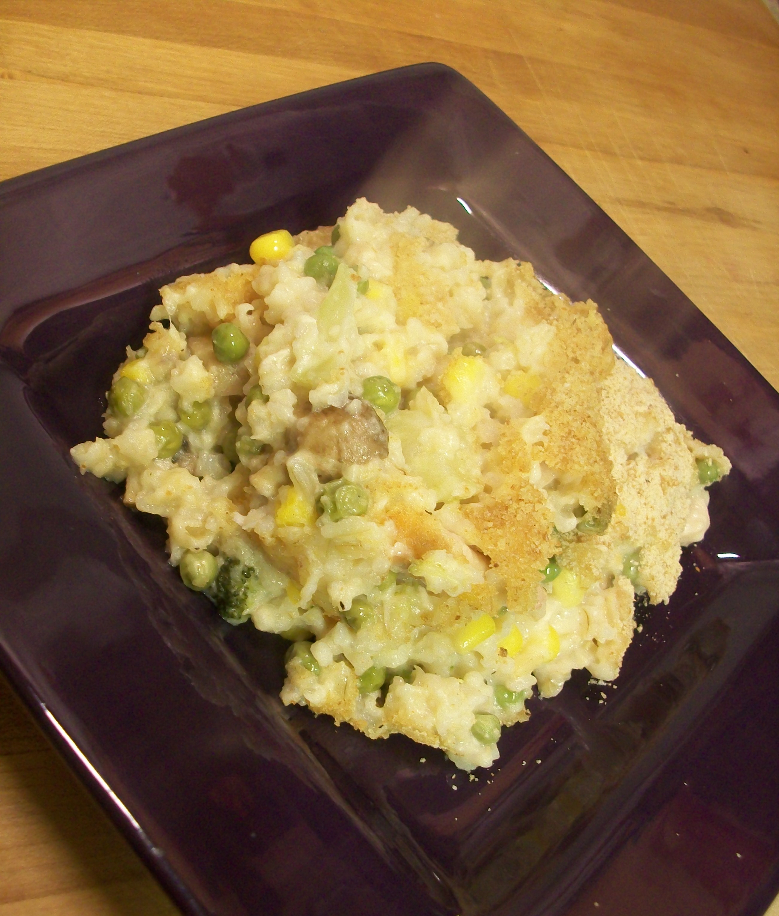- Combine all and pour into greased 9 x 13, sprinkle with bread crumbs, and bake at 375* until heated through (mine took forever because I made in the night before and it went in the oven cold).