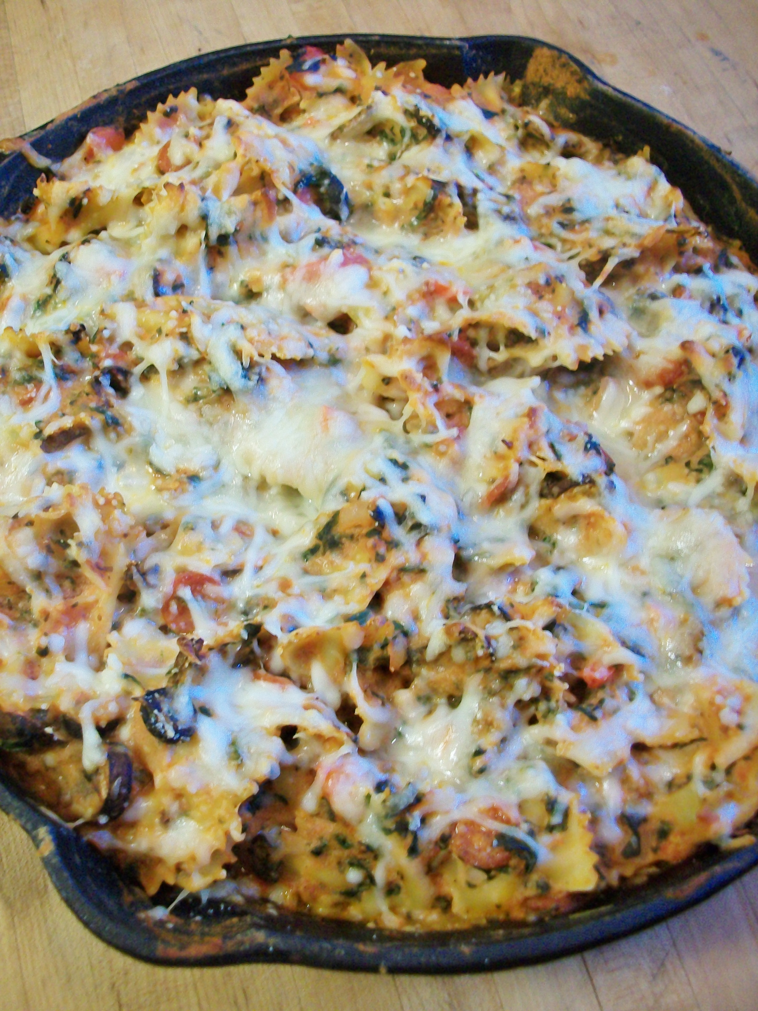 • Sprinkle with pizza blend cheese and bake in the oven at 375* for 20ish minutes, until cheese is melted and pasta is hot through.