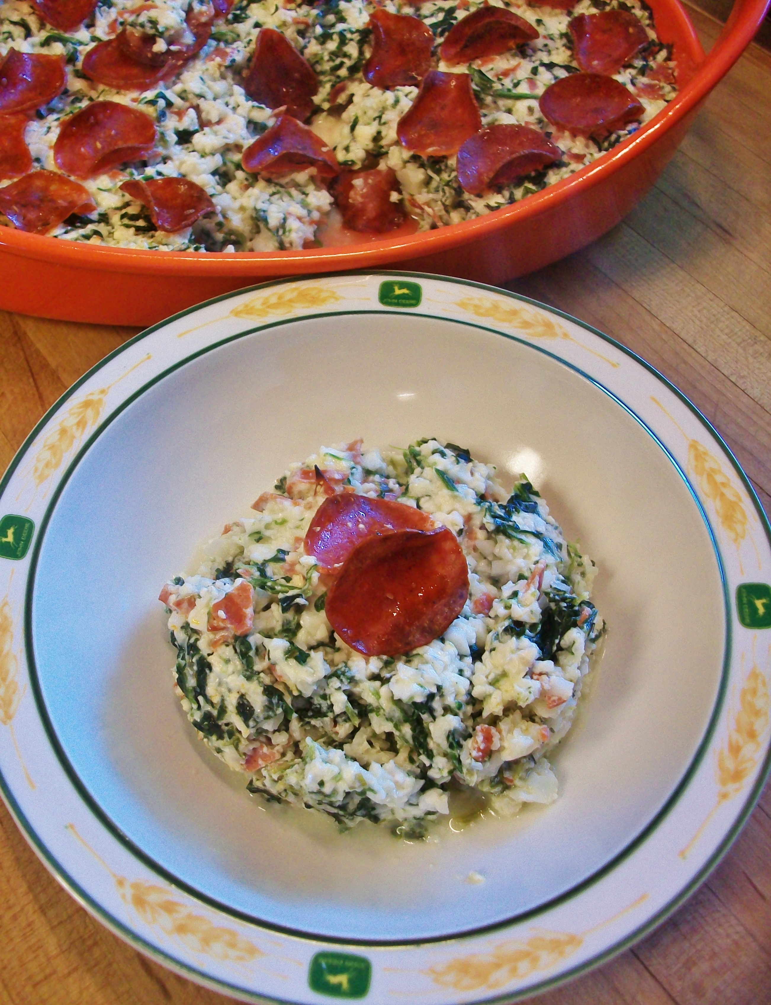 This may seem like a super crazy combo, but people are out there making cauliflower pizza crust all the time! No reason not to test out pepperoni and cauliflower in a casserole…
