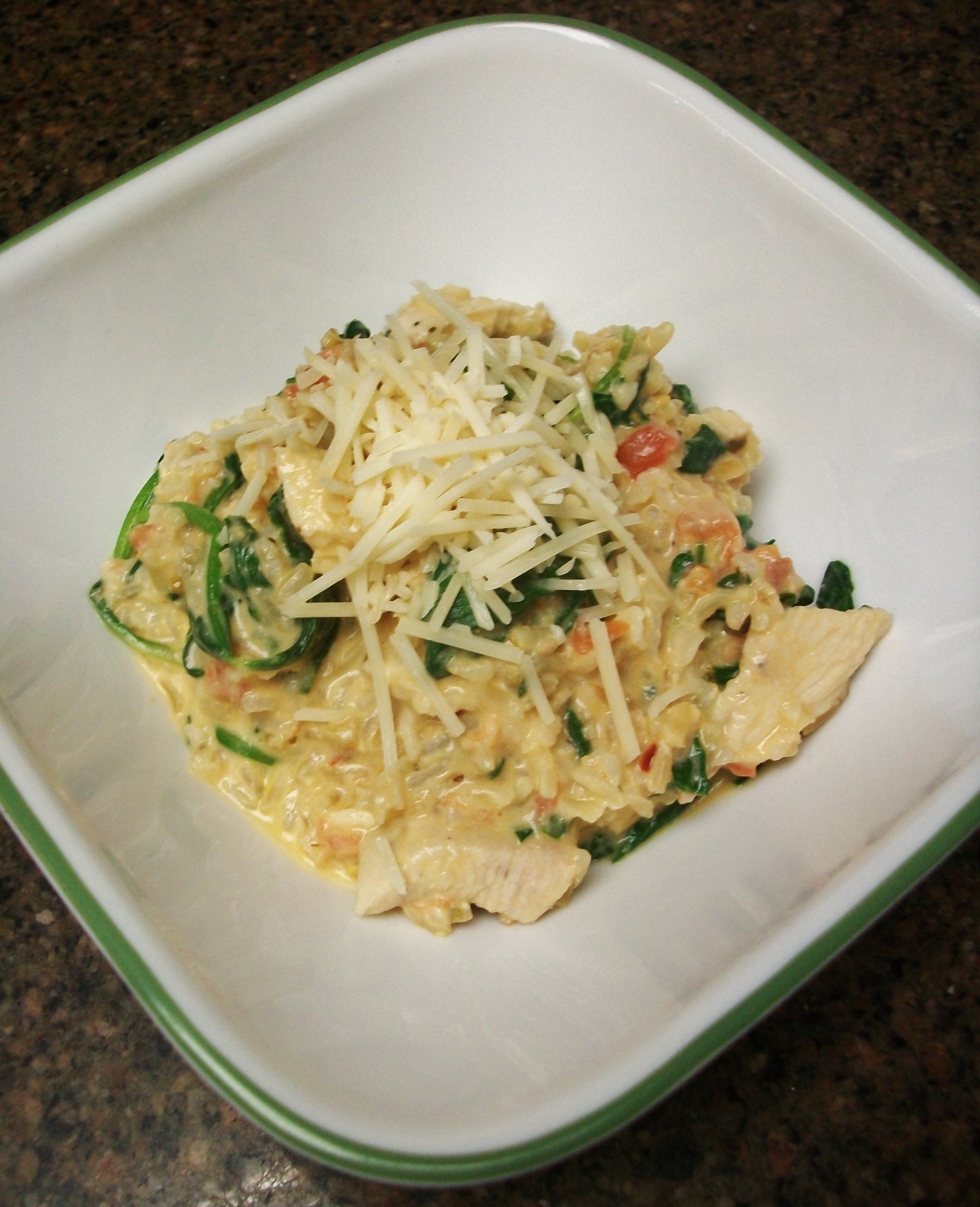 1. I forgot spinach, so I used broccoli and cauliflower and added them with the rice and broth so they could soften. Brian and I really liked it! Thanks Maggie!!