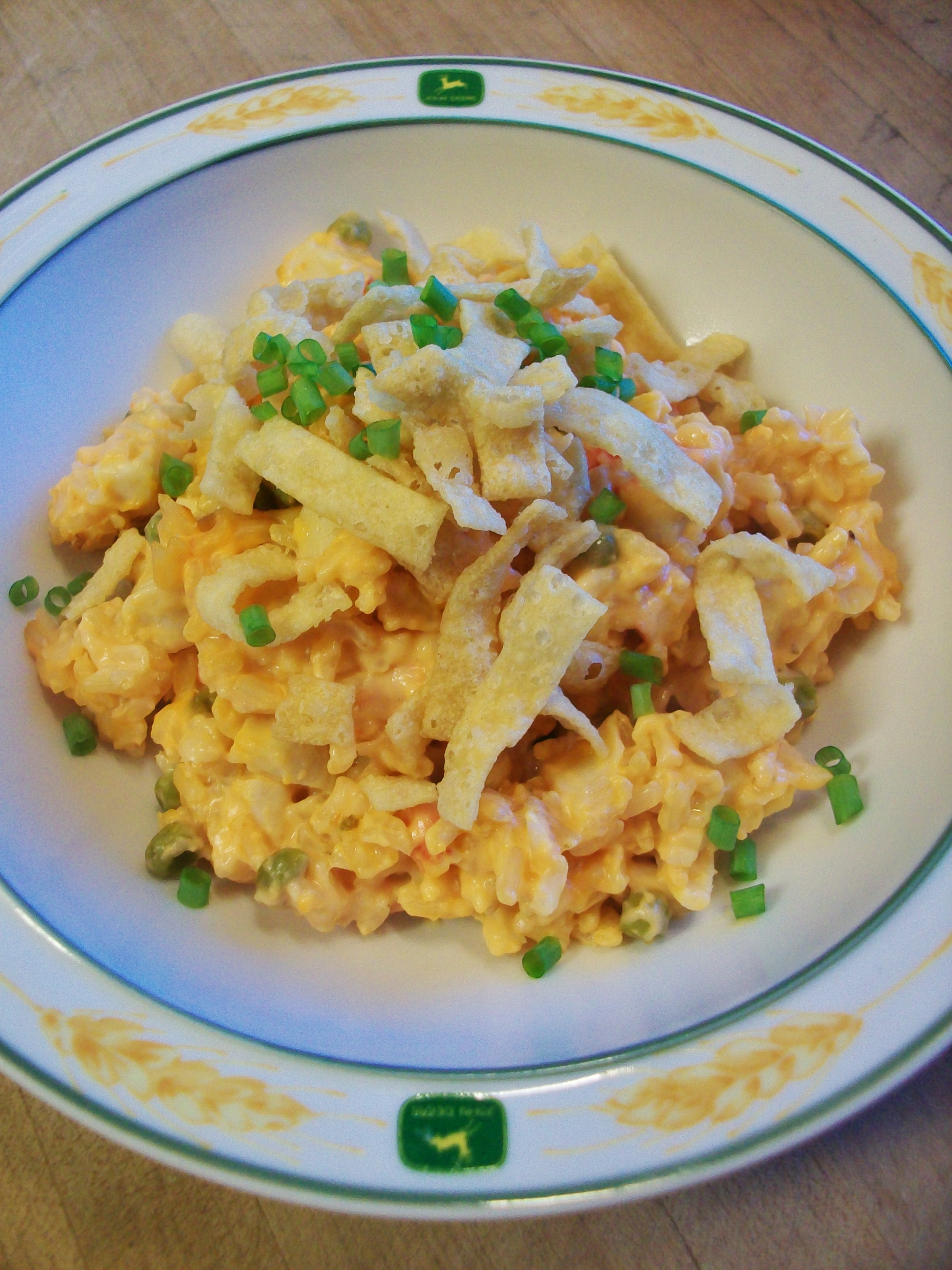 - Pour into greased casserole dish. Bake at 375* for 30ish minutes. Serve with wonton crisps, green onions, or chow mein.